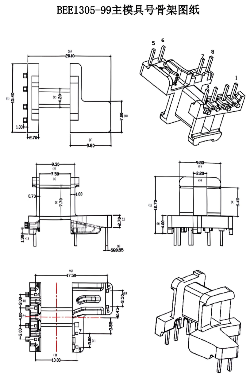 BEE1305主模具骨架&磁芯圖紙EE13臥式(4+2+2)PIN